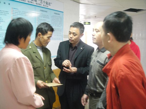 12月24日上午,崔照明书记和毕修颖经理等一行5人,再次前往医院探视,隔着厚厚的玻璃墙,公司领导只能通过内线电话与在无菌病房的许伟光同学交谈,鼓励他安心养病,积极配合治疗,树立信心,战胜疾病,重返课堂。公司一行还与许伟光同学的家长一起向主治医师和科主任详细了解许伟光同学的治疗情况。当公司领导把全校师生员工的爱心捐款交到其家长手中时,许伟光同学的父母忍不住泪水长流,连声道谢。