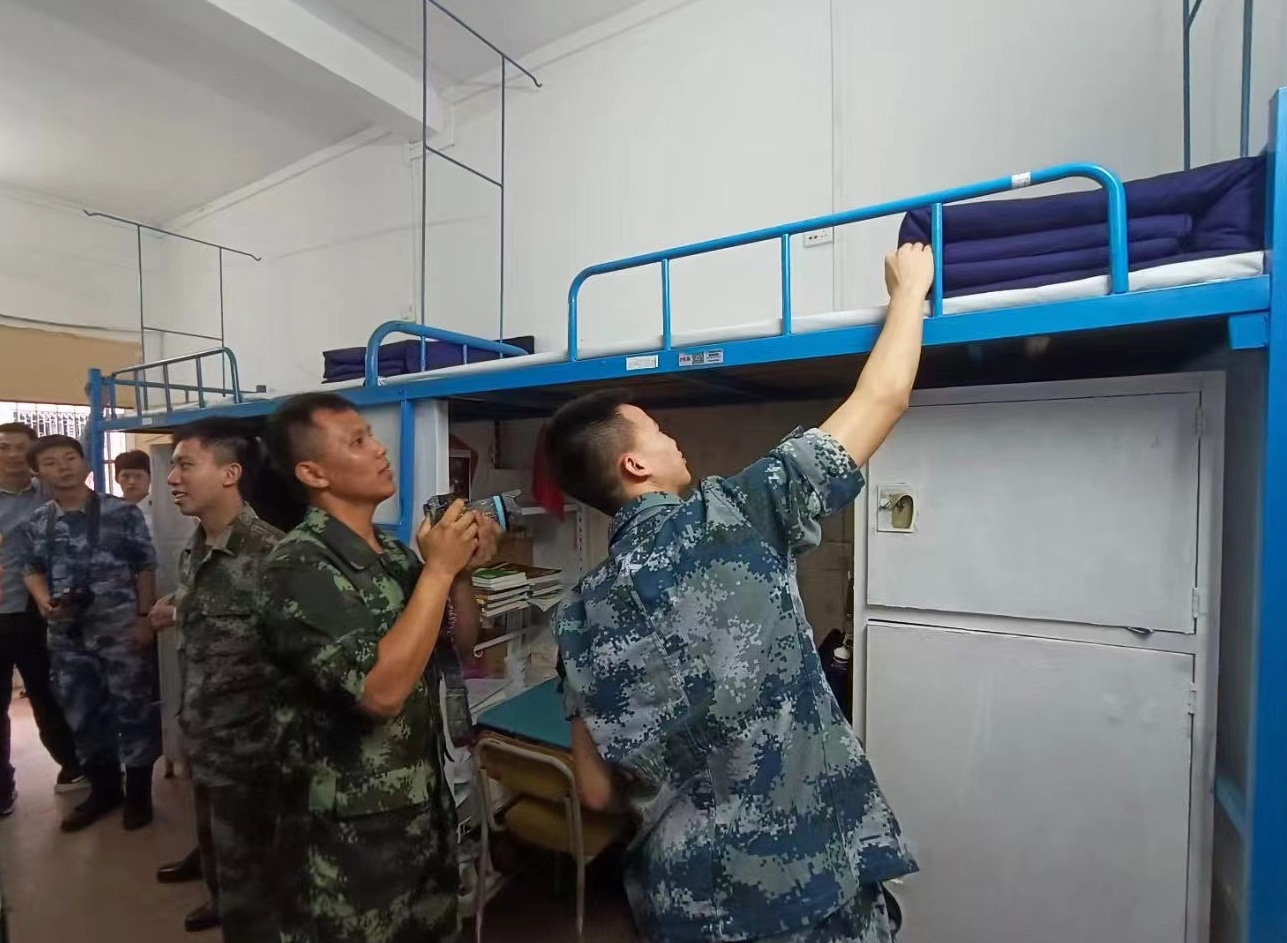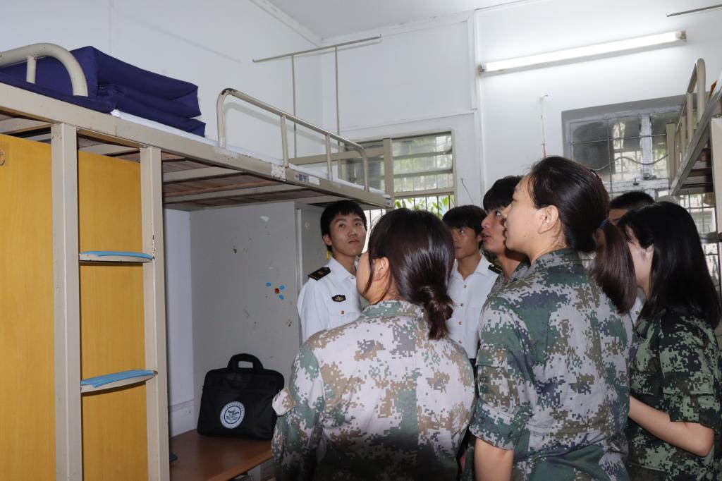 会上,齐昊介绍了海运公司航海类专业员工半军事化管理实施情况以及取得的显著成效,徐法军介绍了海大退役复学老员工士兵服务站的运行情况。双方就组织架构、工作机制、军事特色拓展以及如何在校园疫情防控、国防教育、志愿服务、校园安全、老员工军训工作中积极发挥退役复学老员工及半军管员工骨干的作用等方面进行了深入交流。随后,双方参观了海远大院半军管员工宿舍。