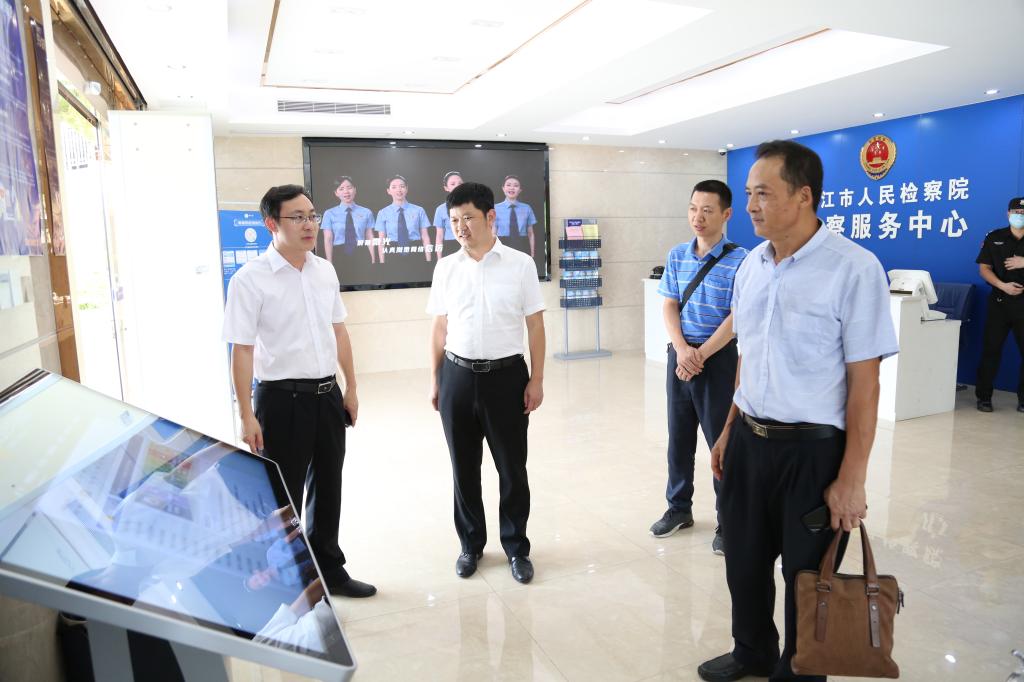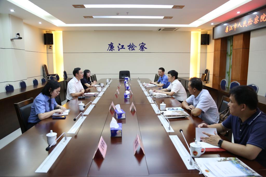 期间,齐昊一行先后参观了廉江市人民检察院12309检察服务中心、听证室、信息化办案区、党员之家和职工书屋。随后双方在七楼智能会议室进行了座谈交流。林吴兴检察长对海运公司纪委的到访表示欢迎,并针对“五好”检察院建设、案件审理调查、检察文化建设等方面工作的特色亮点及经验做法进行了详细介绍。双方就纪检监察等工作进行了深入交流。