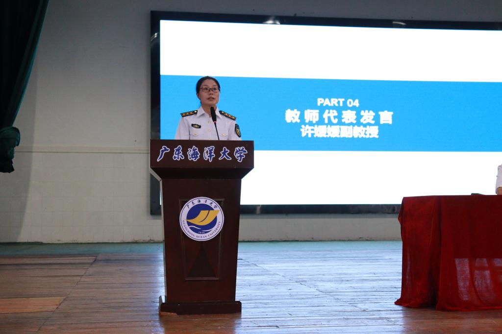随后,教师代表许媛媛发言,她希望同学们树立远大的人生理想,学海爱海,主动担负起“海洋强国”“交通强国”国家重大战略部署的责任,并提醒同学们要珍惜在公司的每一分、每一秒,为实现理想努力奋斗。