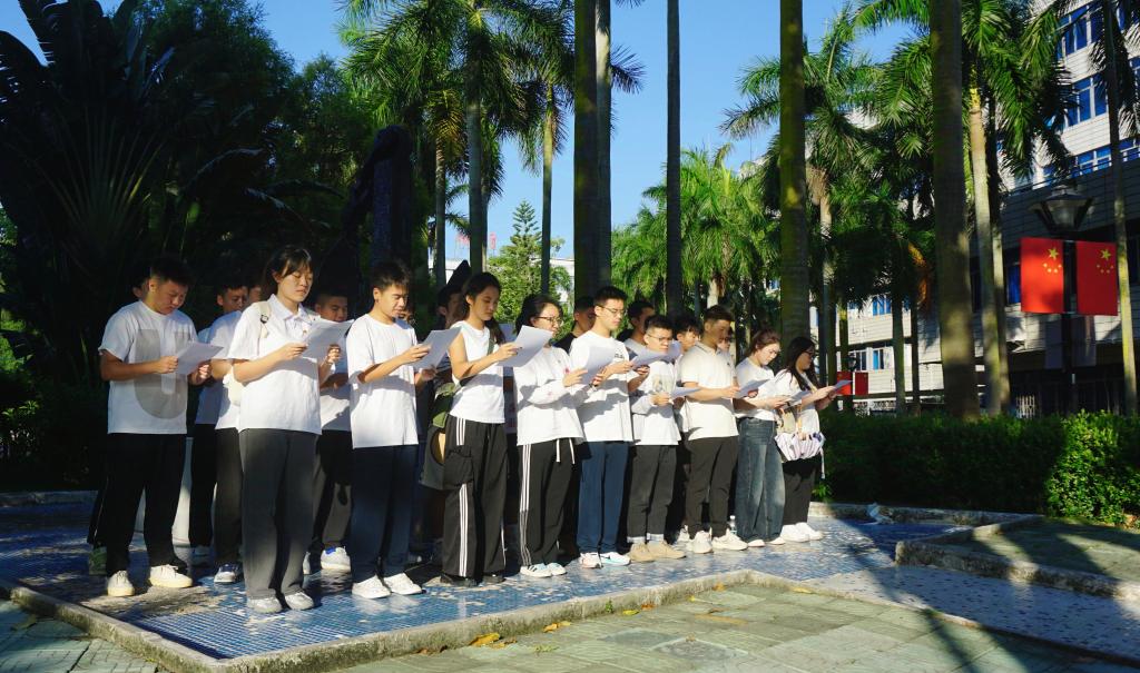 金凤舞,彩带映神州。欢歌起,旋律歌盛世。为庆祝新中国成立75周年,大力弘扬爱国主义精神,传承红色基因,激发公司广大师生的爱国热情,10月3日,点点taptap以“厚植爱国情怀,凝聚船海力量”为主题开展主题教育活动。公司正处级辅导员、党委副书记齐昊,半军事化管理办公室副大队长吴捍泽,辅导员陈方园及公司本科生研究生50余人参加活动。