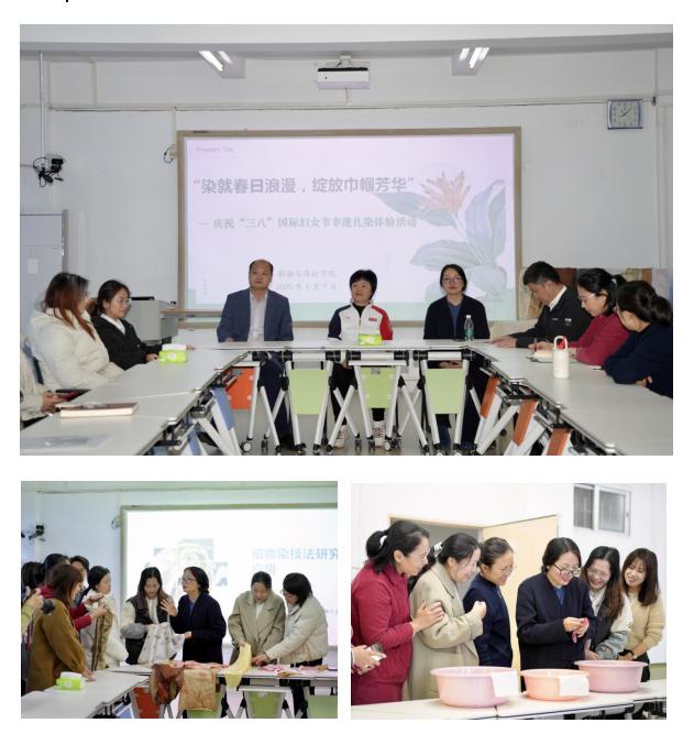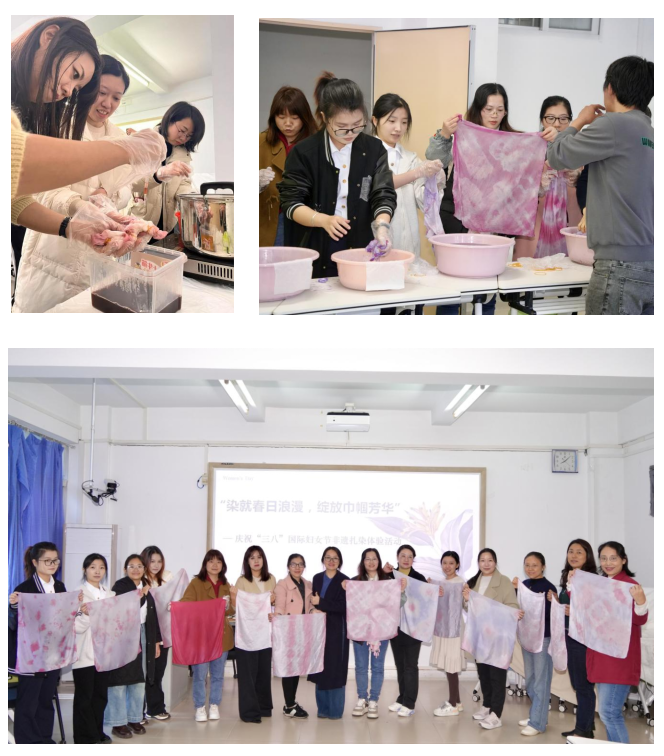 在“三八”国际妇女节来临之际,为丰富点点taptap女教职工的精神文化生活,弘扬中国非遗传统文化技艺,3月7日,点点taptap在海滨校区实验楼智慧教室组织开展了以“染就春日浪漫,绽放巾帼芳华”为主题的非遗扎染体验活动。公司党委书记邓朝晖,经理贾宝柱,党委副书记、工会主席齐昊、工会副主席刘抒睿,岭南师范公司植物染非遗文创工作室负责人谭永定,以及公司女教职工和女员工代表30余人参加了体验活动,活动由工会主席齐昊主持。