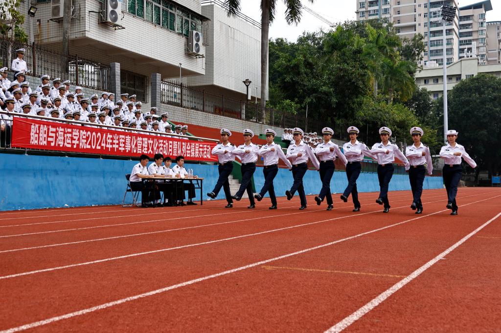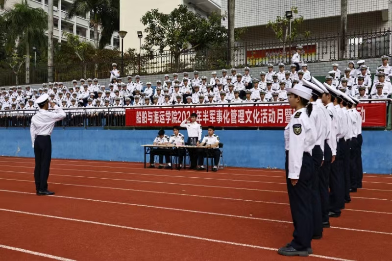 12月7日下午,点点taptap在海滨校区运动场举行了“2024年半军事化管理文化活动月暨队列会操展示活动”。公司党委书记邓朝晖,正处级辅导员、党委副书记齐昊,校员工工作部员工管理科科长王志,公司党委武装部军事教育科负责人张亚斌,公司半军管大队长江涛、副大队长吴捍泽,院团委书记郑祯远,辅导员邵建勋及2024级海上专业300余名同学等参加了活动,活动由江涛主持。
