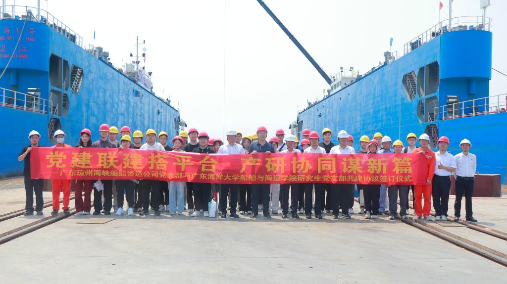 当天,公司研究生党支部与广东琼州海峡船舶修造有限公司、徐闻港有限公司机关行政党支部分别举行了“党建引领,产教共兴”党建共建签约仪式。