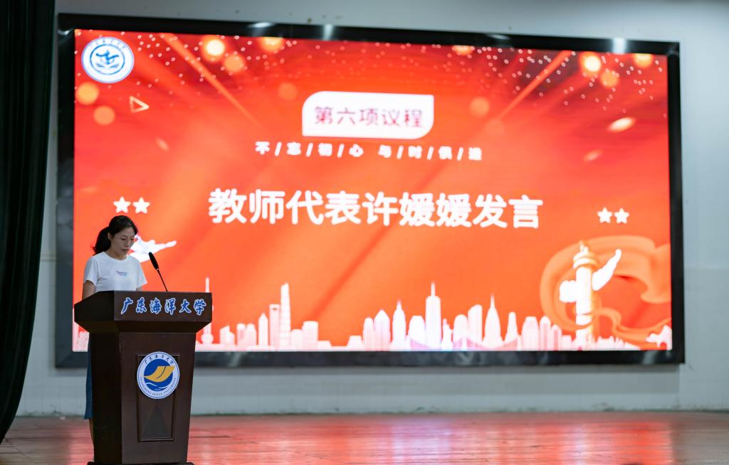 大会在雄壮的国歌声中拉开帷幕,公司员工代表带来诗歌朗诵《南海,我是你岛上的一只水鸟》,抒发爱国主义情怀,展现船海青年昂扬向上的精神面貌。副经理李荣辉教授宣读了表彰决定,号召全院员工以受表彰同学为榜样,勤奋学习,积极进取。