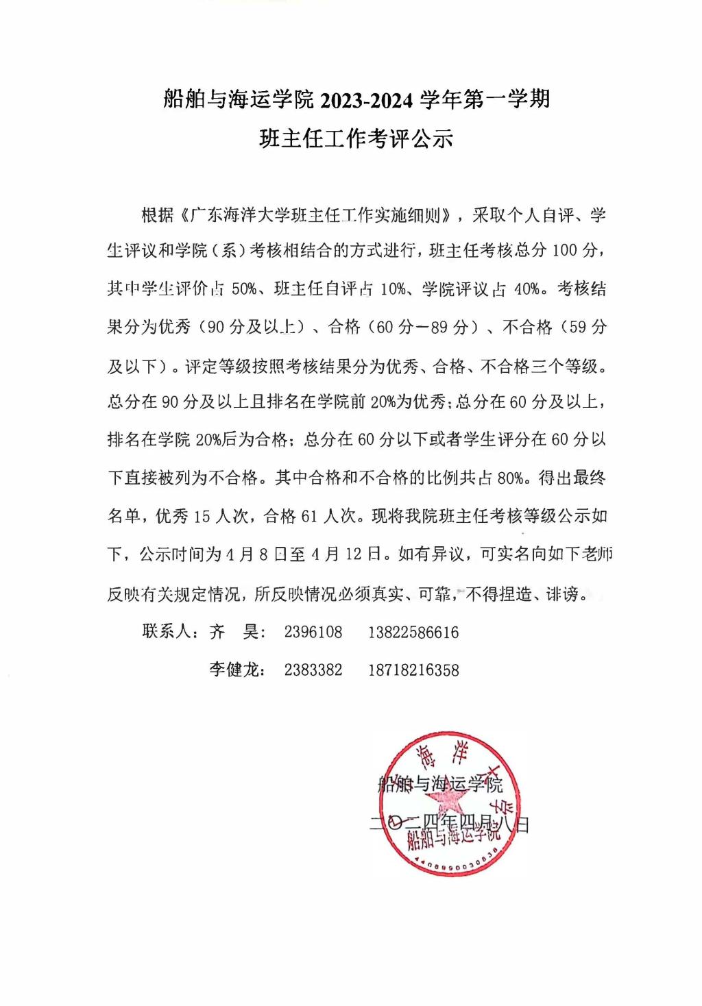 点点taptap2023-2024学年第一学期班主任工作考评公示
