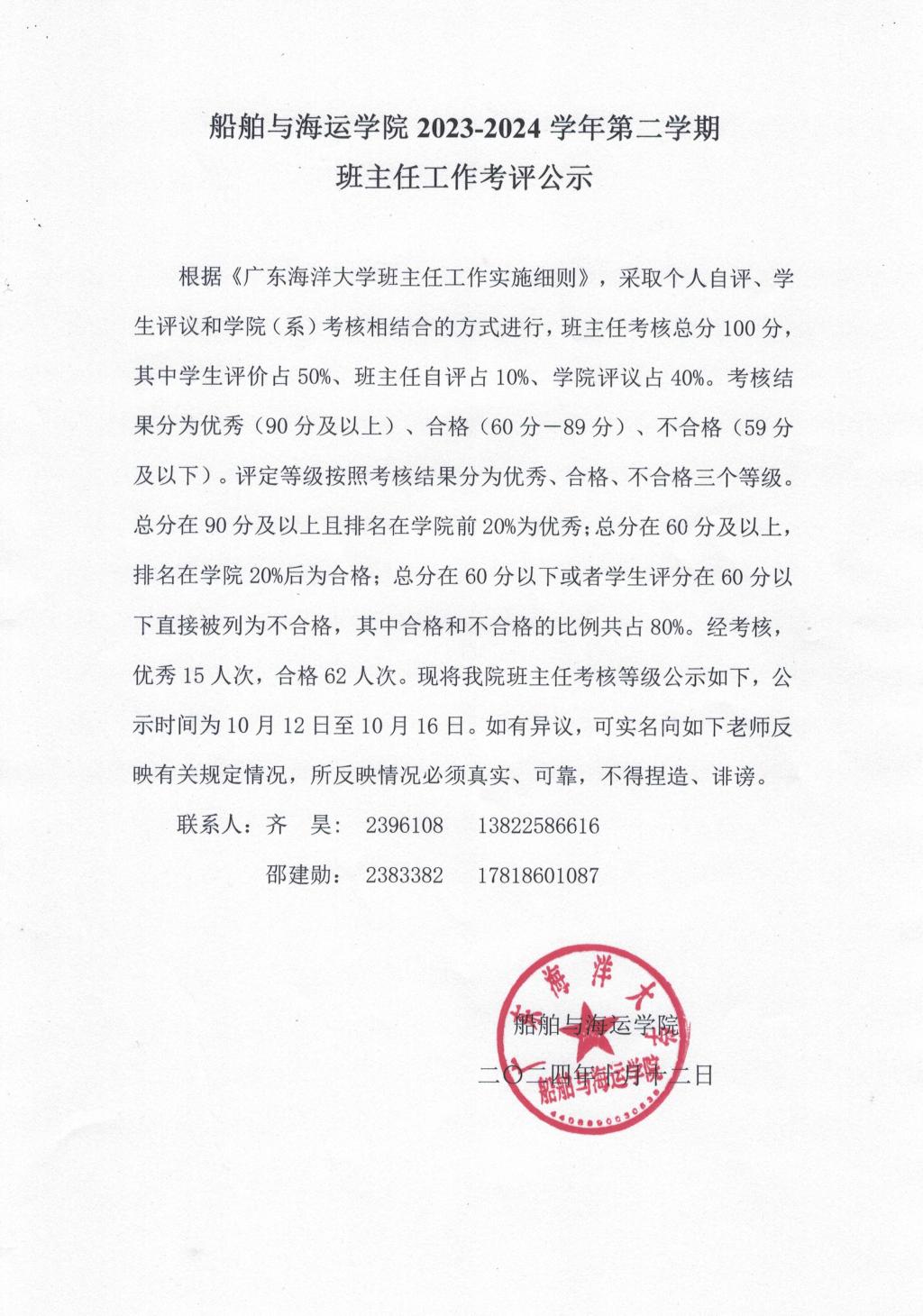 根据《点点taptap班主任工作实施细则》,采取个人自评、员工评议和公司(系)考核相结合的方式进行,班主任考核总分100分,其中员工评价占50%、班主任自评占10%、公司评议占40%。考核结果分为优秀(90分及以上)、合格(60分-89分)、不合格(59分及以下)。评定等级按照考核结果分为优秀、合格、不合格三个等级。总分在90分及以上且排名在公司前20%为优秀;总分在60分及以上,排名在公司20%后为合格;总分在60分以下或者员工评分在60分以下直接被列为不合格,其中合格和不合格的比例共占80%。经考核,优秀15人次,合格62人次。现将公司班主任考核等级公示如下,公示时间为10月12日至10月16日。如有异议,可实名向如下老师反映有关规定情况,所反映情况必须真实、可靠,不得捏造、诽谤。