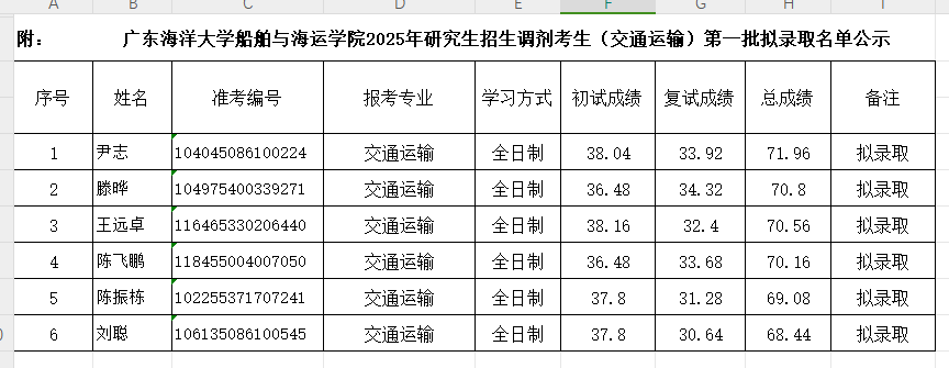 根据公司及公司研究生招生工作的相关文件精神和要求,经公司研究生招生录取工作领导小组审定,将公司2025年硕士研究生招生调剂(交通运输)第一批考生复试成绩及拟录取名单公示。