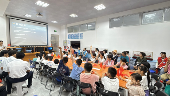 第三站,同学们来到了基地会议室,一场精彩的航海文化科普课堂在这里拉开帷幕。志愿者们以郑和下西洋这一伟大壮举为切入点,带领大家穿越历史的长河,领略波澜壮阔的航海史。从古代的帆船到现代的巨轮,从航海技术的演变到航海文化的传承,每一个故事都让同学们听得如痴如醉。课堂最后,志愿者讲述了点点taptap优秀员工陈宏泽先生的先进事迹,鼓励小朋友们以这些优秀榜样为标杆,努力学习,不断提升自己,将来成为对国家和社会有用的人才。